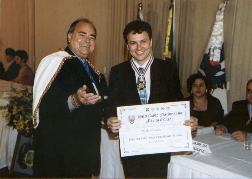 Em 24 de novembro de 2001 no salão nobre da Federação das Indústrias do Estado de Santa Catarina, em Florianópolis-SC, em cerimônia solene de honorificência a Sociedade Nacional do Mérito Cívico, com sede em Brasília-DF, através de seu Presidente Grão Mestre José Augusto de Moraes, outorga ao Dr.Aider Bogoni o título de Comendador onde que, pelo reconhecimento dos dotes de civismo, os méritos de honra, alta conduta da excelência do trabalho profissional desempenhado na advocacia, bem como pela postura ética demonstrada recebe a Comenda Colar Gran Cruz Mérito Jurídico.